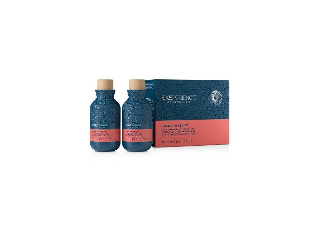 Profesionální talasoterapeutická kúra EKSPERIENCE Talasso Revitalizing Essential Extract je navržena pro okamžitou revitalizaci vlasové pokožky a podporu vitality vlasů 🌿. Koncentrované ampule působí přímo u kořínků, kde pomáhají obnovovat rovnováhu pokožky, stimulovat její přirozené funkce a dodat vlasům svěžest a sílu.