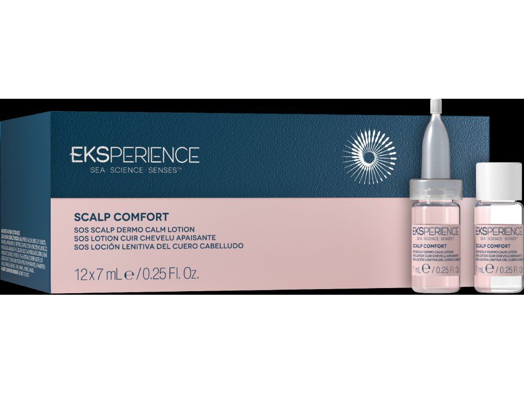 Uklidňující a hydratační ampule určené pro citlivou pokožku hlavy-EKSPERIENCE-SOS Scalp Comfort-Revlon Professional-12X7ml „Uklidňující a hydratační ampule pro citlivou pokožku hlavy – SOS Scalp Comfort“